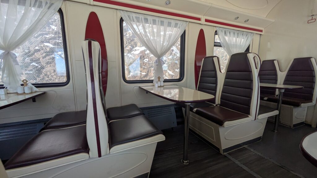 - Ambiance : tables partagées, décoration simple et parfois rétro, avec vue sur les paysages défilants.